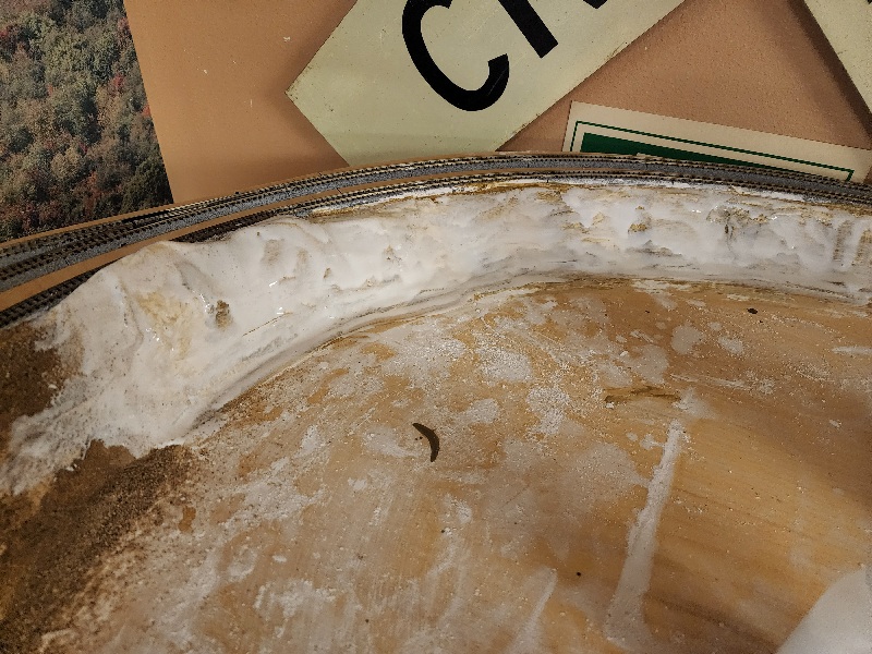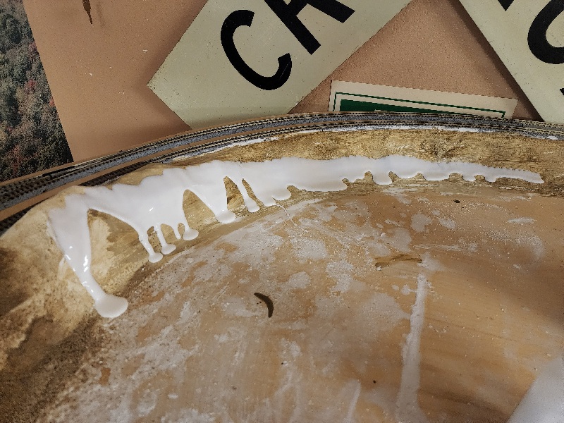 I then spread Elmer's Glue-All over the scenery. You can thin it out, or use full strength glue, depending on the slope of the scenery.