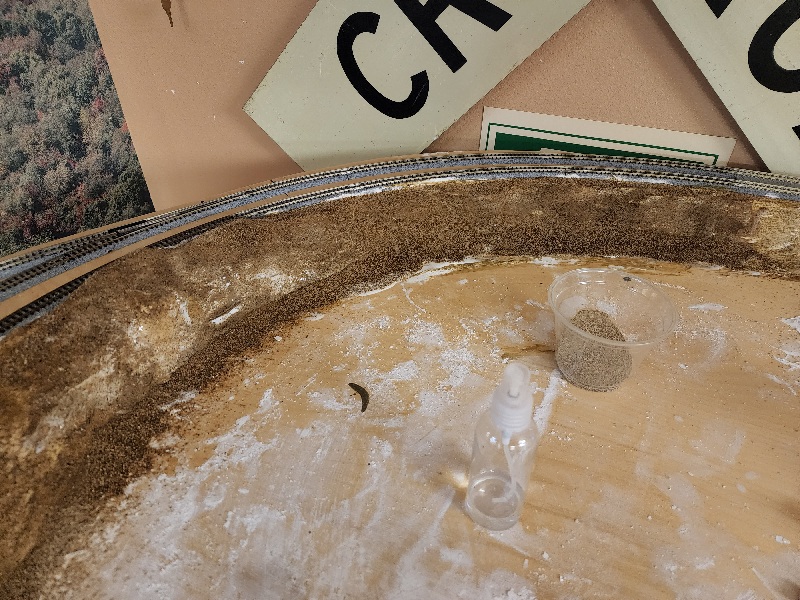 I sprinkle the decomposed granite over the scenery base, coving up the spread out glue. I then mist the decomposed granite with 70% isopropyl alcohol, making issue it is sufficiently soaked.