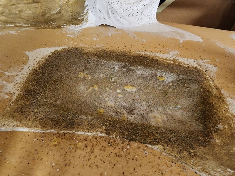 I then collected the materials needed, I used sifted decomposed granite from Home Depot, and various dry and burnt grass ground foam colors from Woodland Scenics.