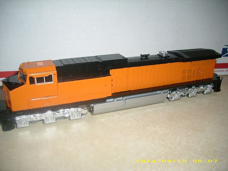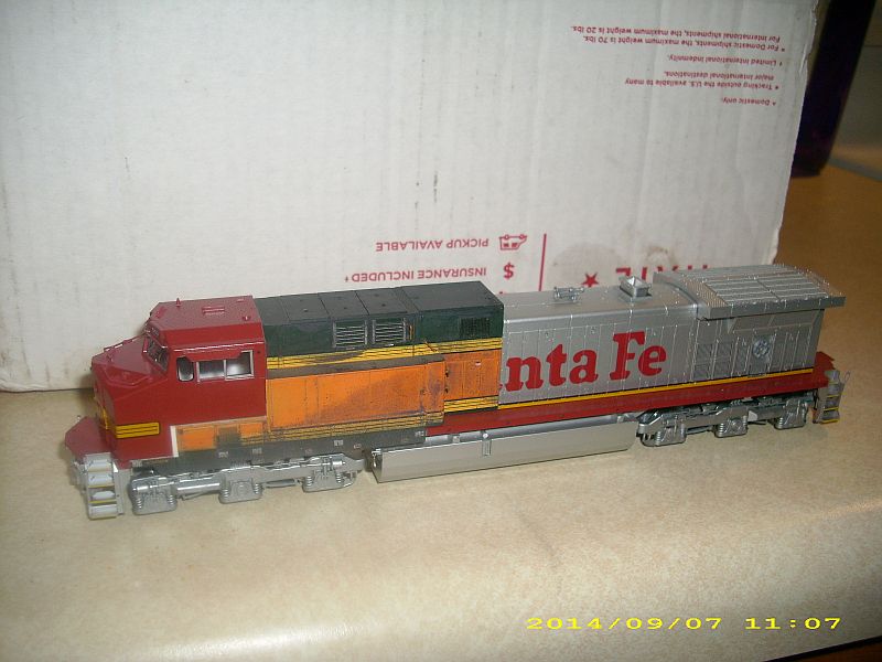 The first step was getting a used Kato ATSF C44-9W and a part of a Kato AC4400CW was use for the rebuilt area.