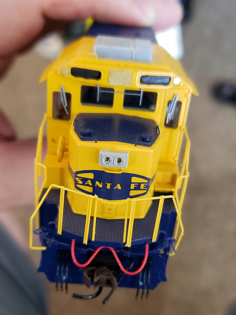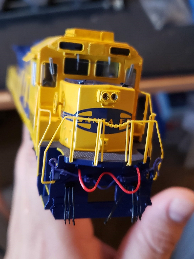 Recently I was asked to build a model of BNSF 577, a blue bonnet Dash 8-40B, with a nose headlight.  The Atlas model used, only came with the high headlight.