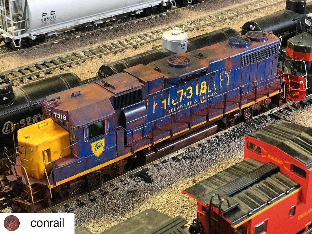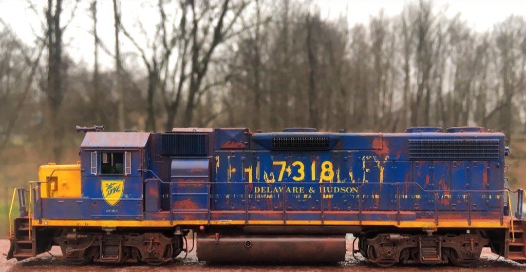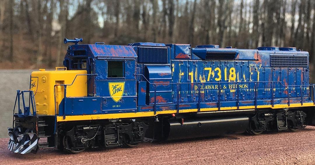 Recently Joe shared some photos of a D&H GP38-2 he modeled in HO scale. This particular unit was originally owned by Lehigh Valley, and was hastily repainted in the "blue dip" version of Delaware & Hudson's paint.