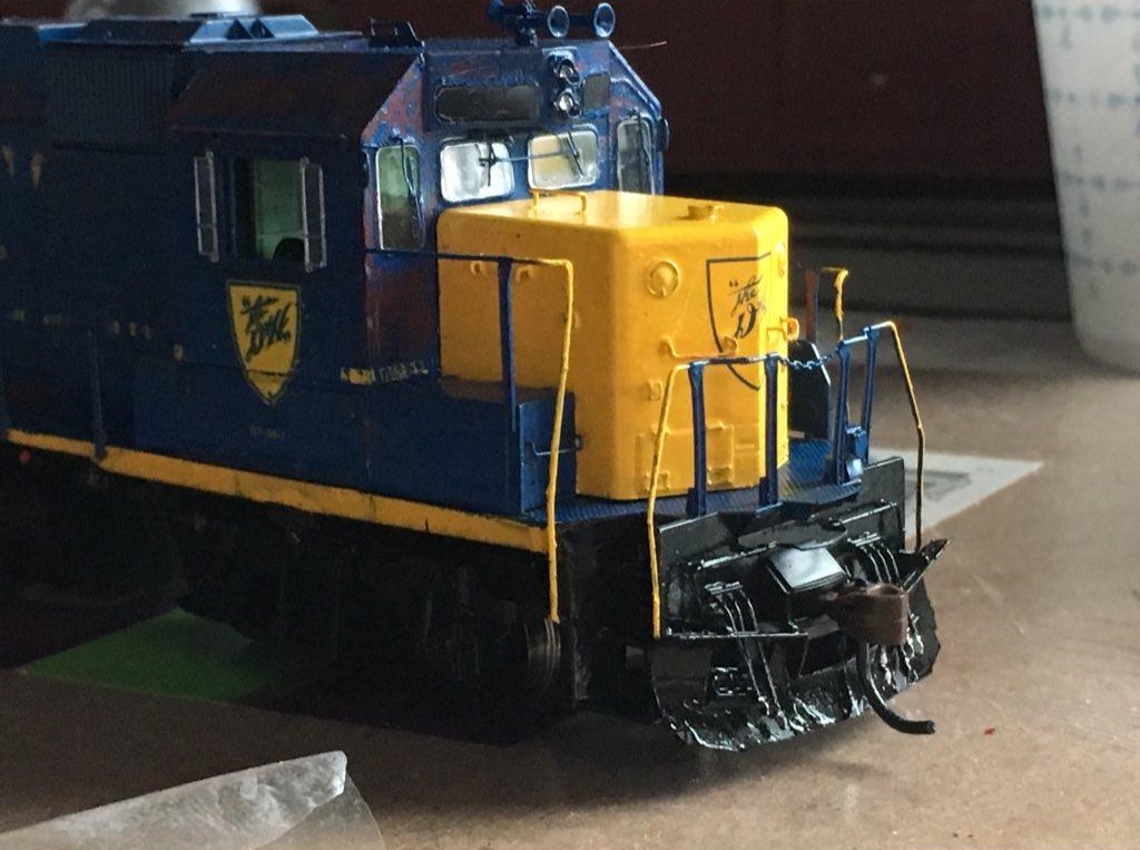 Step 5: Joe then proceeded to decal the locomotive over his newly peeled blue paint, replicating the look of the prototype. He also painted the handrails blue, with the ladder portion of them painted yellow.
