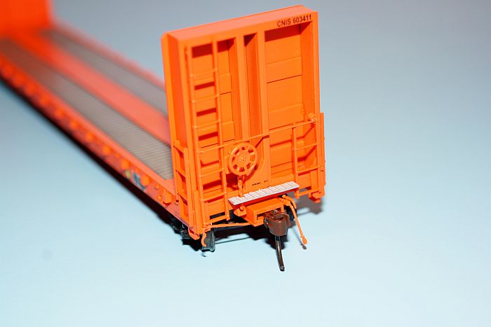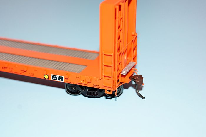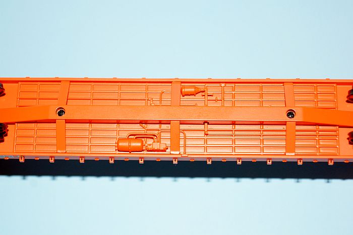 The only complaints I have are the lack of an etched metal brake platform, and the incompleteness of the end brake hose. The brake house is detailed, but ends on the inside of the sill. The deck of the car is open at the ends inside the bulkhead, and a top-down view should show the piping passing next to the draft gear.