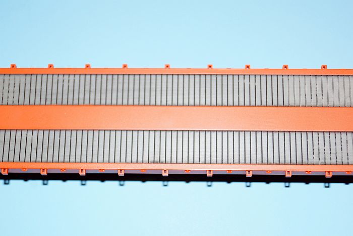 These 70-ton flat cars had a fishbelly underframe and straight side sills with 15 steel stake pockets, lading strap anchors. The deck was flat, and low to the ground at with a deck height ranging from 3' 8" to about 3' 11". As a result, the top of the center sill and body bolsters are on the same plane as the top of the wood decking on either side. The bulkheads were pushed as far to the end as possible, with a straight profile on the end and interior side.