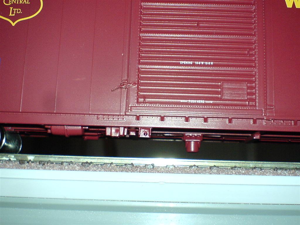 ExactRail used a scale width coupler pocket, which is a welcome addition, and improves the look of the model. Couplers are installed at gauge. They did not install air line detail (such as on Genesis models) however that's not uncommon to be left off.