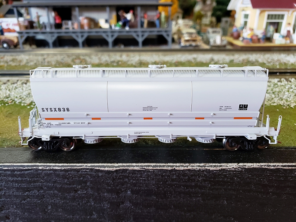 Officially carded as the American Car & Foundry (ACF) PD3500 Covered Hopper, the name "Flexi-Flo" came from the New York Central.  More details on the Prototype can be read on Rapido's website: https://rapidotrains.com/products/ho-scale/freight-cars/ho-scale-acf-flexi-flo