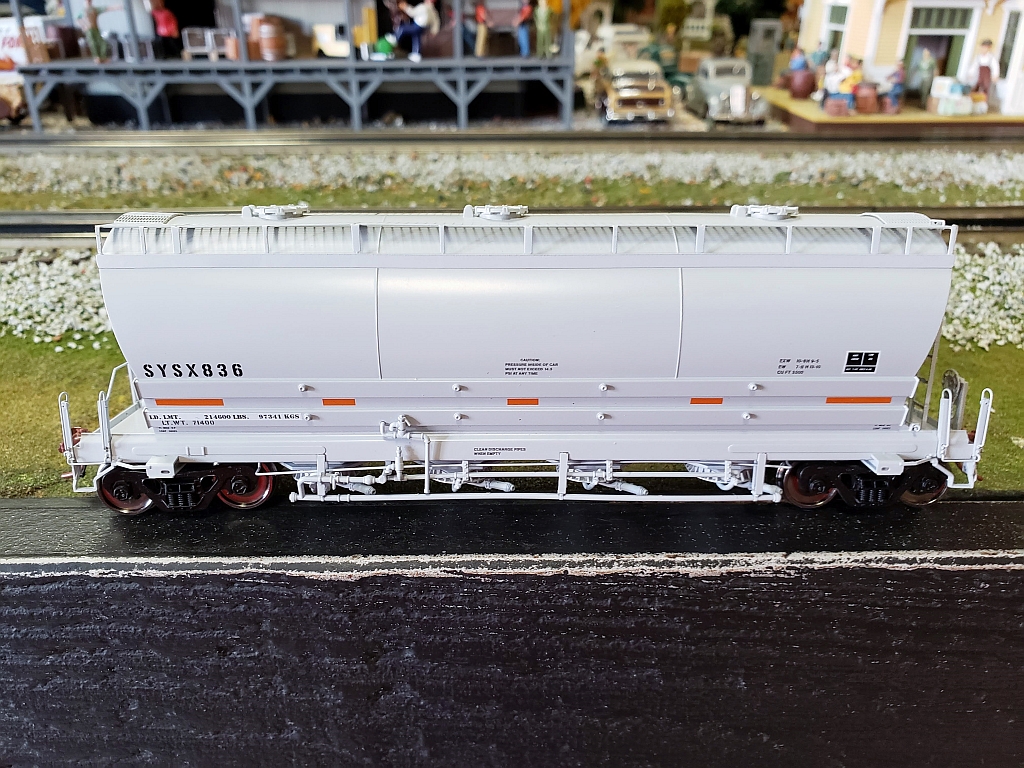 Printing is smooth and accurate to the prototype, however, I was not able to find a photo of SYSX 836 in the FRA mandated reflective stripe era.  While I appreciate the reflective stripes, since I model that era, a modeler who would choose to model SYSX 836 before the stripes were presumable added, has the more difficult task of removing them.  See Removing Factory Printed Letters or Numbers (Microsol) if you would like to attempt to backdate one of these cars.
