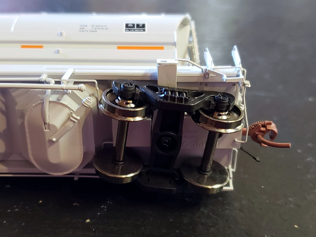 Rapido includes a very nice version of the 125 ton trucks that most of these cars come equipped with.  Not all do however, and Rapido has correctly included 100 ton trucks with the appropriate cars.  Wheels are 38" in diameter on the 125 ton trucks, with code 110, RP25 contour, all 4 of mine were exactly in line for back to back spacing according to my NMRA gauge.