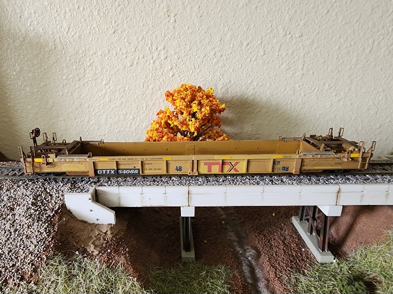 I finished off my customers model in a light, but effective weathering job. TTX cars tend to turn a shade of umber or sepia with grime and dirt build up.