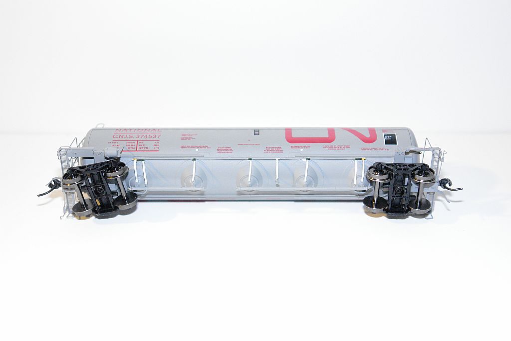 The cars are ready-to-run, and come equipped with Kadee #78 couplers, and standard tread (Code 110) 36” wheels. The prototype was equipped with truck mounted brakes, Intermountain included this detail on the trucks. The roof walks are finely etched metal, as are a number of the details.