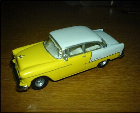 damaged one. Instead of just fixing it, I decided I'd take the wheels for one of my yellow & white Chevy Bell Airs.