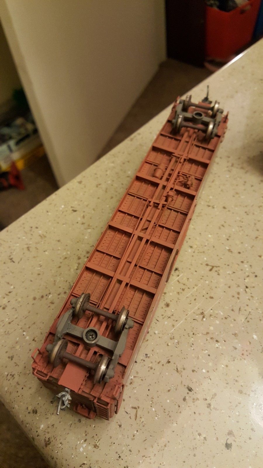 This Intermountain RTR boxcar comes factory equipped with Kadee couplers and Accurail trucks, however the trucks were friction bearing, so I replaced them with a set of 70 ton roller bearing, also from Accurail which are appropriate for the era modeled (early 1980's).