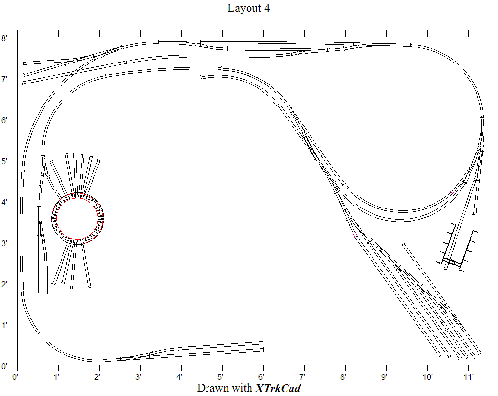 I've started buying track for the Christmas layout, and at the same time I'm going to build myself a much larger switching layout here in my computer room. So far I've developed a track plan, which is on V1.6 now.