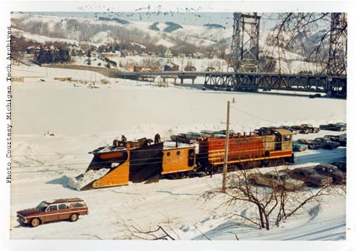 The Copper Range Railroad used a wooden Russell snowplow. Although it had “wings” most snowplows cannot clear a swath as wide as a Jordan. The Copper Range also had a Jordan but it was much older and lacked the vee-plow on the front. Their trains were assembled differently. The Russell plow was first, then one of their Baldwin switchers , followed by the Jordan and brought up by the caboose.