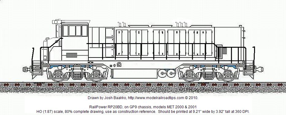 HO scale drawing of an MET RP20BD