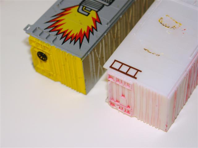 Walthers has subsequently redone the molds for this car providing a much better starting point for your model. They even came in correct prototypical schemes, carded as the 50' Evans Smooth Side Boxcar, they're no longer in stock at Walthers, but can be found in some well stocked retailers.