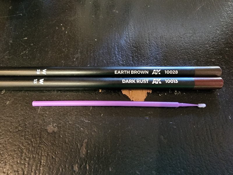 Powered in the range come in loose form, or hard cakes like these from Tamiya, and these pencils from AK Interactive, which are a form of pastel chalk.