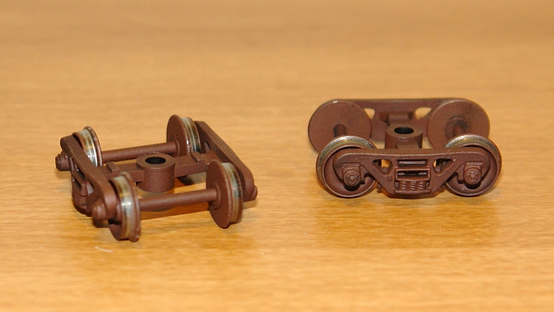 A one color, primer if you will, to start weathering trucks for your freight cars.